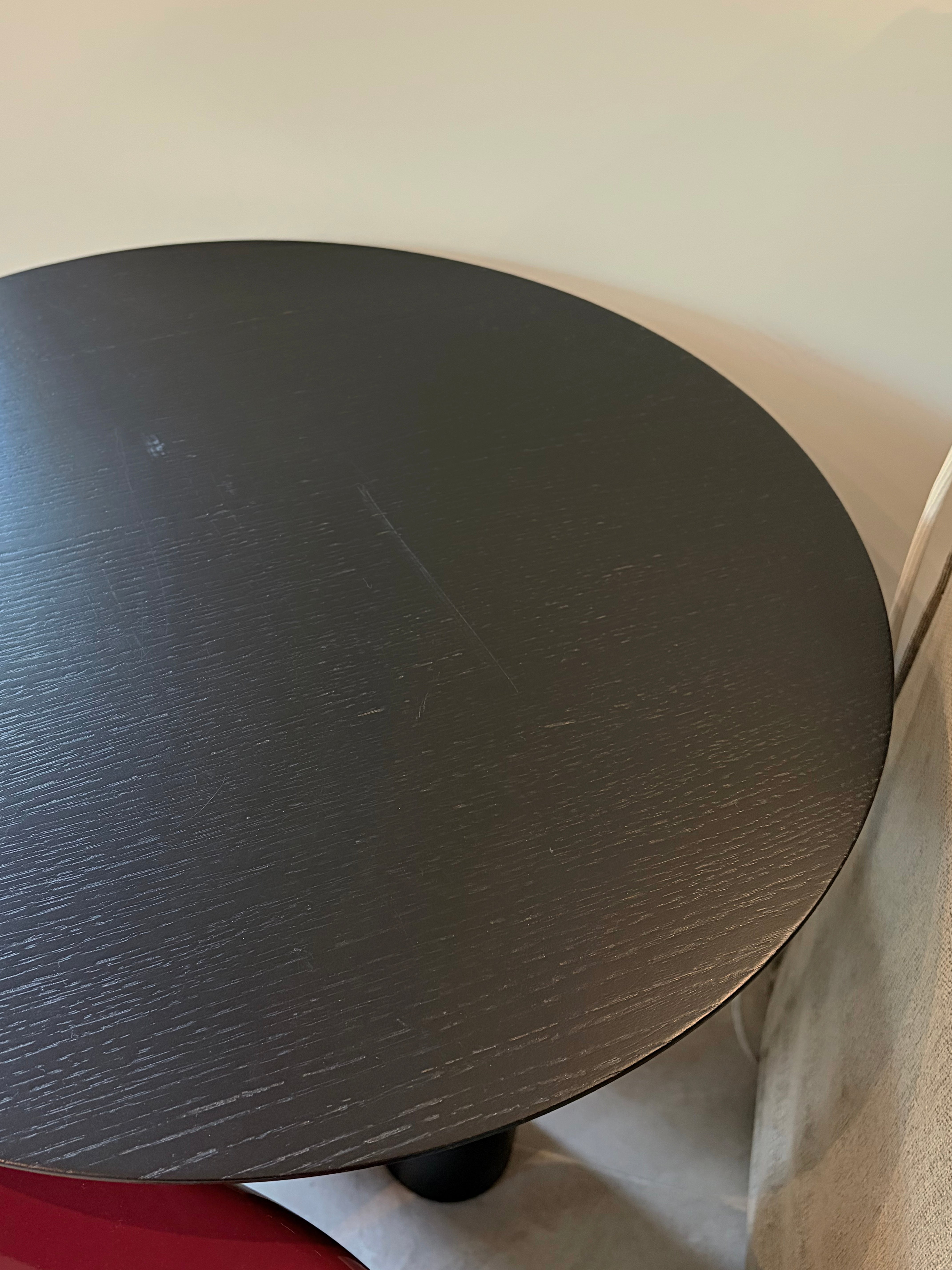 Torre Round Side Table balances softness and strength through its gently curved top and solid cylindrical legs. The natural oak finish in deep tones adds a quiet elegance, making it an effortless companion beside a sofa, a bed or a favorite chair.
