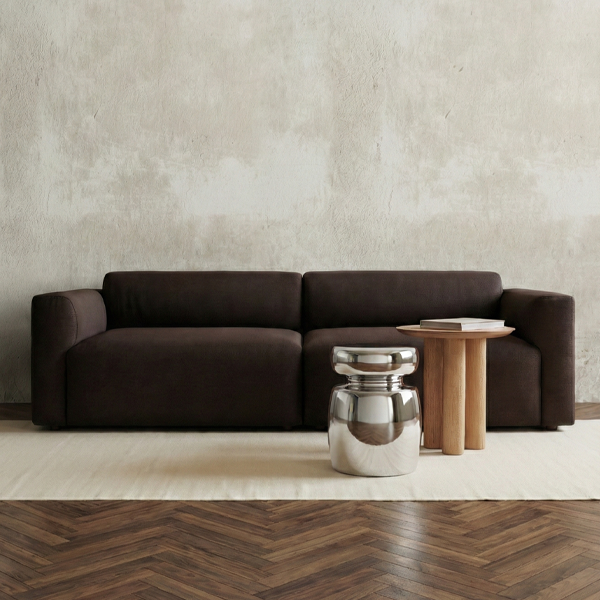 Its sculptural form and bold presence create a confident and expressive statement within the space.Designed with balanced proportions, the sofa offers a sense of visual calm, while the generously padded seating ensures a comfortable and relaxed experience.
