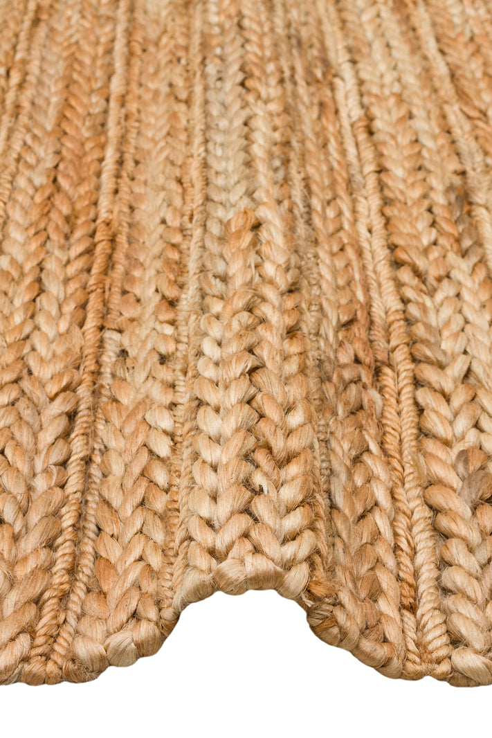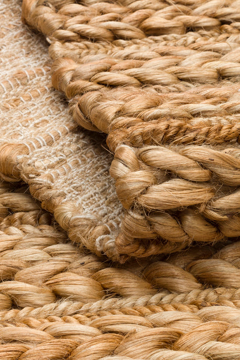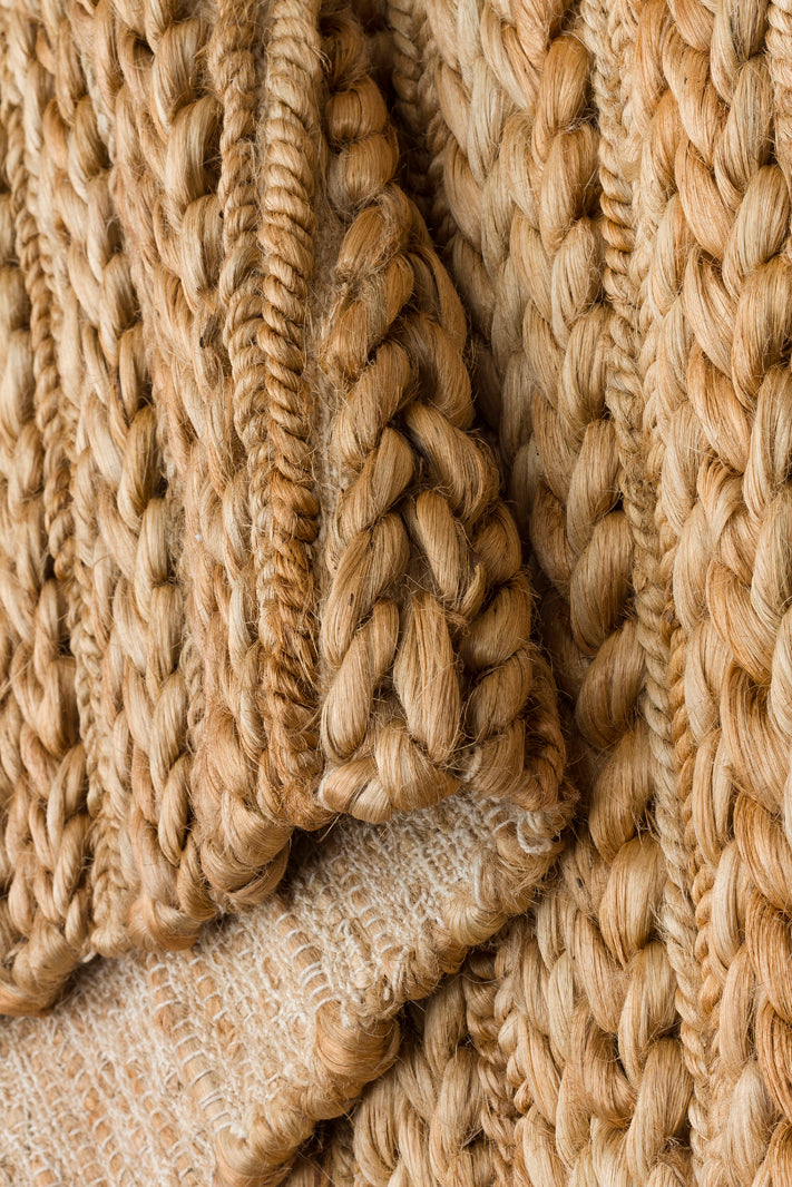 Rug 02 features a hand-braided jute structure, offering a natural, earthy texture with a warm and relaxed look.