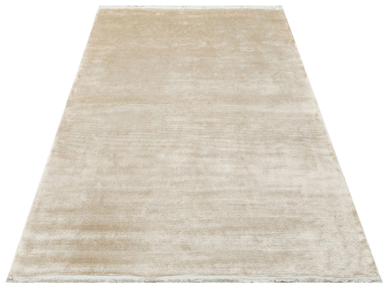 Rug 05 features a velvet-like viscose texture crafted on specialized looms, offering a smooth, refined and naturally luminous surface in a clean solid-color design. The soft sheen of natural viscose enhances the simplicity of the weave, while the fringed edges complete the rug with an elegant and contemporary finish.