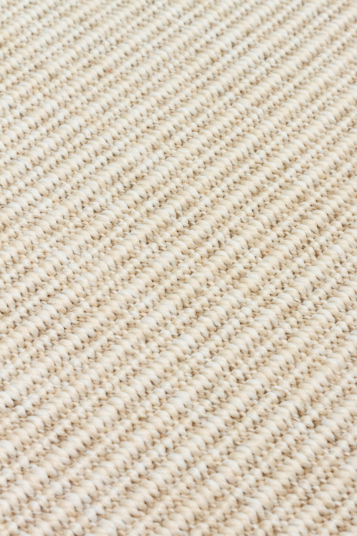 Rug 07 features a sisal-look texture crafted from durable polypropylene, offering a non-shedding, easy-to-clean surface suitable for both indoor and outdoor spaces. Its clean woven structure maintains its form against daily wear, while the understated design brings a natural, contemporary touch to any setting.